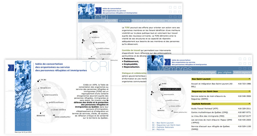 Site pour la Table de concertation des organismes au service des personnes réfugiées et immigrantes (TCRI).